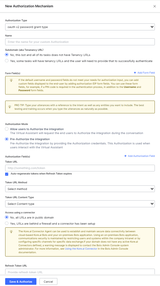 To define Authorization for your assistant, using oAuth v2 password grant, please follow these steps: