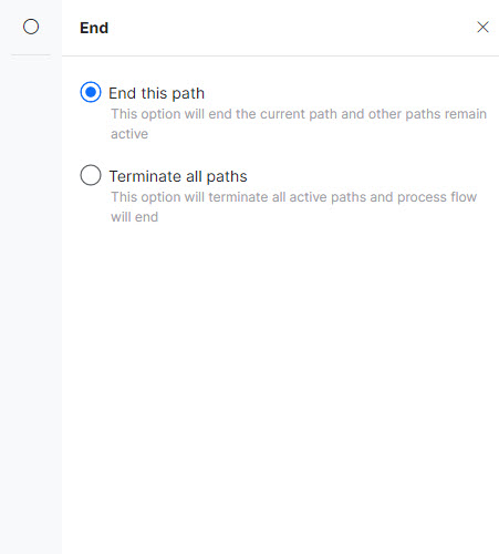 End logic helps you to end a process flow. With the End logic, you can end the current path or all active paths. While configuring the End logic, you can select any of the below options to end a path: